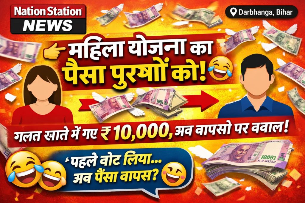 दरभंगा (बिहार)।दरभंगा जिले के जाले प्रखंड में महिला स्वरोजगार योजना उस वक्त सुर्खियों में आ गई, जब योजना की 10-10 हजार रुपये की सहायता राशि गलती से कुछ पुरुषों के बैंक खातों में ट्रांसफर हो गई। मामला सामने आते ही गांव में हंसी–मजाक से लेकर राजनीतिक तंज तक शुरू हो गया।