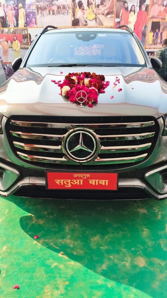 अब माघ मेले के दौरान सतुआ बाबा ने अपनी नई मर्सिडीज़ कार की पूजा कराई। खास बात यह रही कि गाड़ी की नंबर प्लेट वाली जगह “जगतगुरु सतुआ बाबा” लिखवाया गया है, जो लोगों के बीच आकर्षण और चर्चा का विषय बना हुआ है।