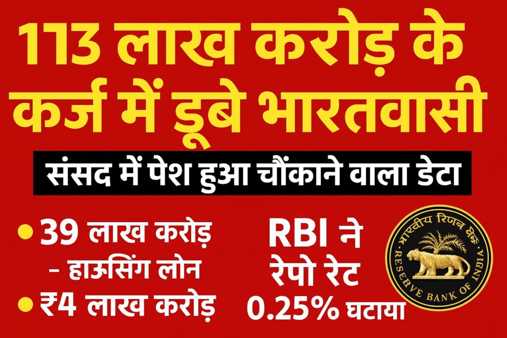 नई दिल्ली : देश में आम लोग कितने बड़े पैमाने पर कर्ज के बोझ तले दबे हैं, इसका ताज़ा आंकड़ा संसद में सामने आया। सरकार द्वारा पेश किए गए डेटा के अनुसार, भारतीयों पर कुल 113 लाख करोड़ रुपये का कर्ज है। यह आंकड़ा पिछले वर्षों की तुलना में काफी अधिक है।