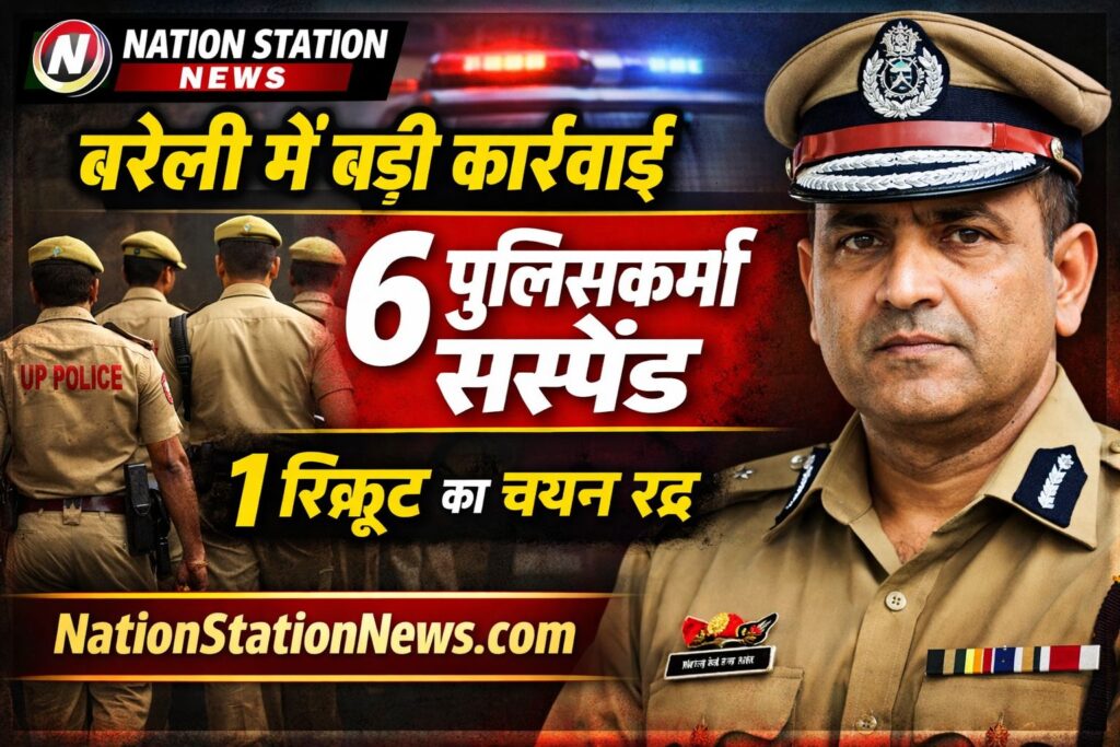 बरेली। कानून-व्यवस्था की जिम्मेदारी संभालने वाले पुलिस महकमे में बड़ी कार्रवाई ने हलचल मचा दी है। Bareilly Police ने अनुशासनहीनता पर सख्त रुख अपनाते हुए तीन आरक्षियों और तीन मुख्य आरक्षियों को तत्काल प्रभाव से निलंबित कर दिया है। वहीं एक रिक्रूट आरक्षी को चयन निरस्त करने का कारण बताओ नोटिस जारी किया गया है।
