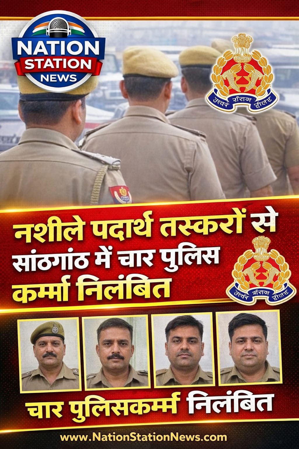 कानपुर में पुलिस महकमे पर दाग! चरस–गांजा तस्करों से सांठगांठ के आरोप में 4 पुलिसकर्मी सस्पेंड
