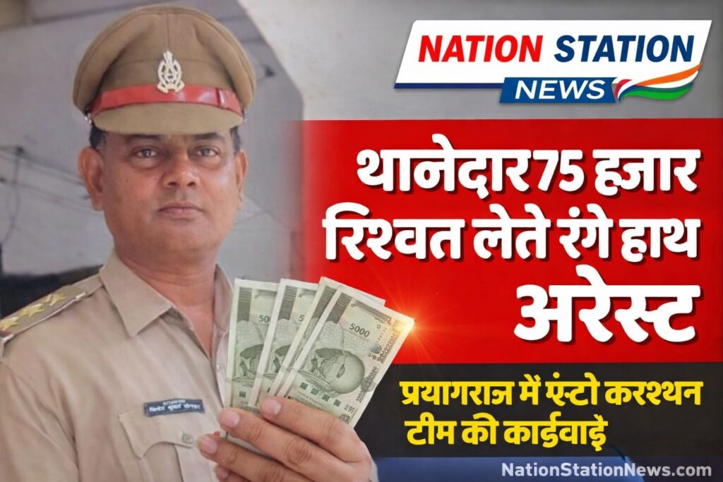 प्रयागराज :कानून की रक्षा की शपथ लेने वाला ही जब कानून का सौदागर बन जाए तो सवाल उठना लाजिमी है। प्रयागराज के बारा थाना प्रभारी विनोद कुमार सोनकर को एंटी करप्शन टीम ने 75 हजार रुपये की रिश्वत लेते हुए रंगे हाथों गिरफ्तार किया।