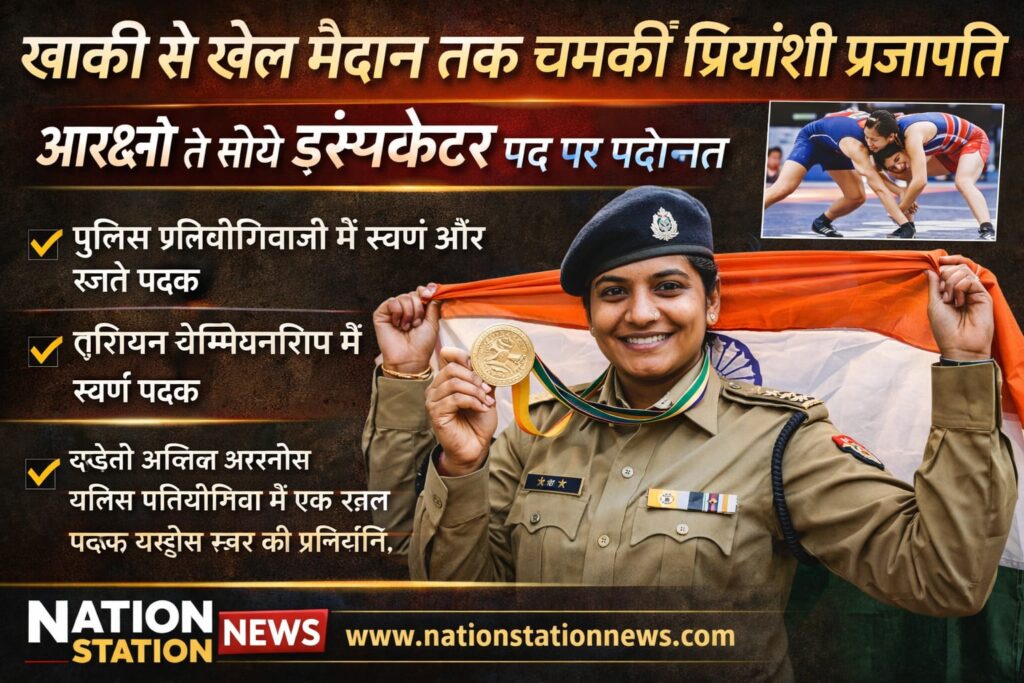 प्रियांशी प्रजापति को स्वतंत्रता दिवस 2025 के अवसर पर मुख्यमंत्री उत्कृष्ट सेवा पुलिस पदक से सम्मानित किया जा चुका है। पुलिस सेवा में दक्षता के साथ-साथ उन्होंने खेल के क्षेत्र में भी उल्लेखनीय उपलब्धियां हासिल की हैं।https://youtube.com/shorts/DF4o2EFV5r4?feature=share