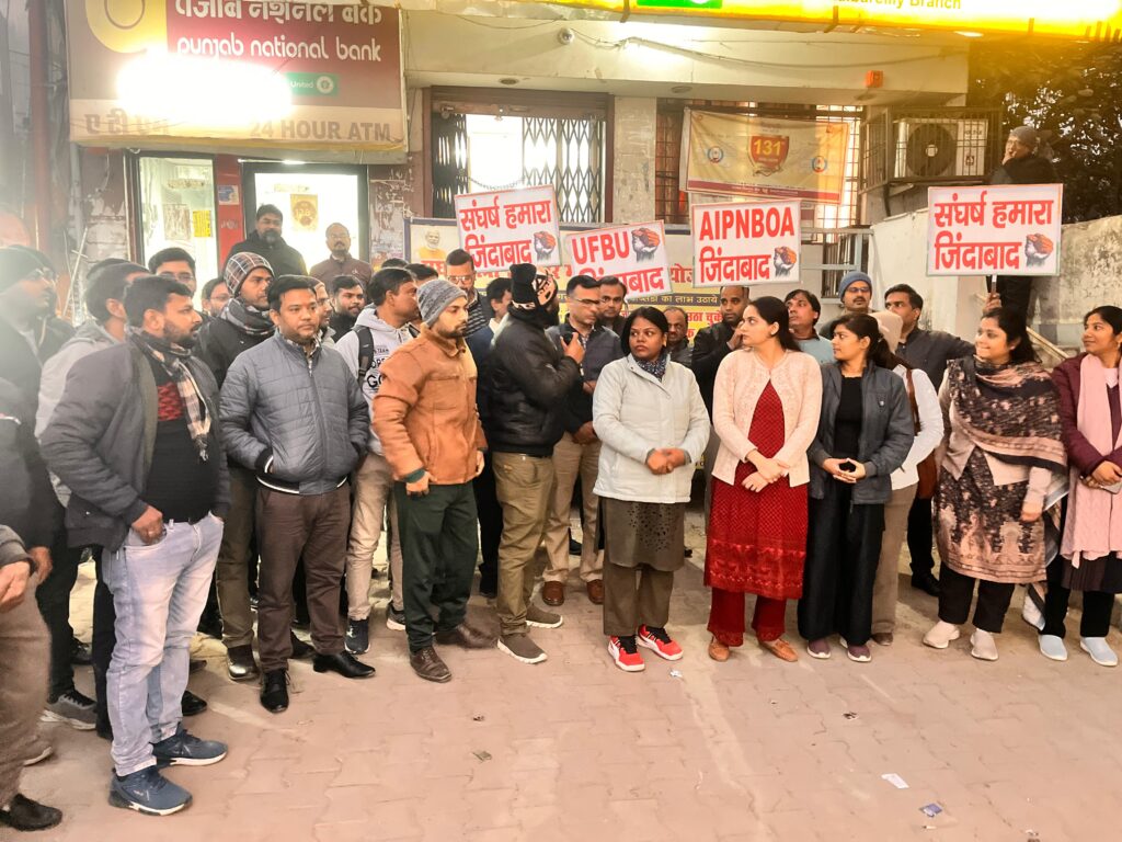 - सिविल लाइंस पीएनबी शाखा के बाहर जुटे बैंककर्मी