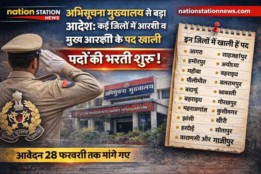 उत्तर प्रदेश की राजधानी लखनऊ स्थित अभिसूचना मुख्यालय ने 23 फरवरी 2026 को अहम आदेश जारी किया है। जारी अभिसूचना के मुताबिक प्रदेश के कई जिलों में आरक्षी/मुख्य आरक्षी के पद रिक्त हैं, जिन पर तैनाती की प्रक्रिया शुरू कर दी गई है।