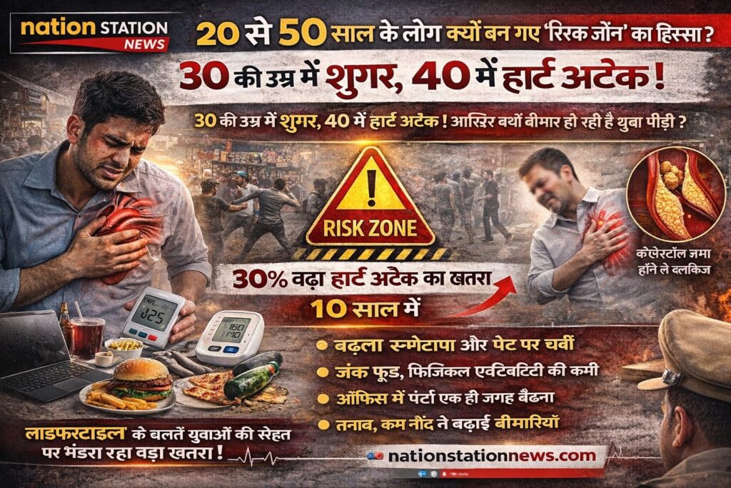 जिस उम्र में लोग करियर और परिवार के सपने बुनते हैं, उसी उम्र में अब डायबिटीज, हाई कोलेस्ट्रॉल और हार्ट डिजीज जैसी गंभीर बीमारियां दस्तक दे रही हैं। स्वास्थ्य विशेषज्ञों का कहना है कि 20 से 50 वर्ष के बीच के लोगों में इन बीमारियों के मामले तेजी से बढ़ रहे हैं — और इसकी सबसे बड़ी वजह है खराब लाइफस्टाइल।